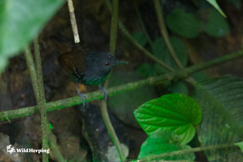このほか、ムナグロキヌバネドリ(英名:Collared Trogon、学名:Trogon collaris)も観察しました。この周辺の個体群は、他地域の同種と比べて腹部の色合いがややオレンジがかっており、非常に美しいことで知られています。