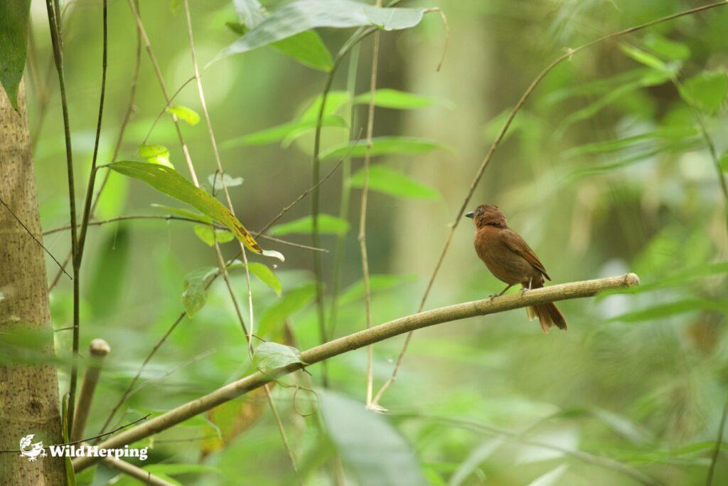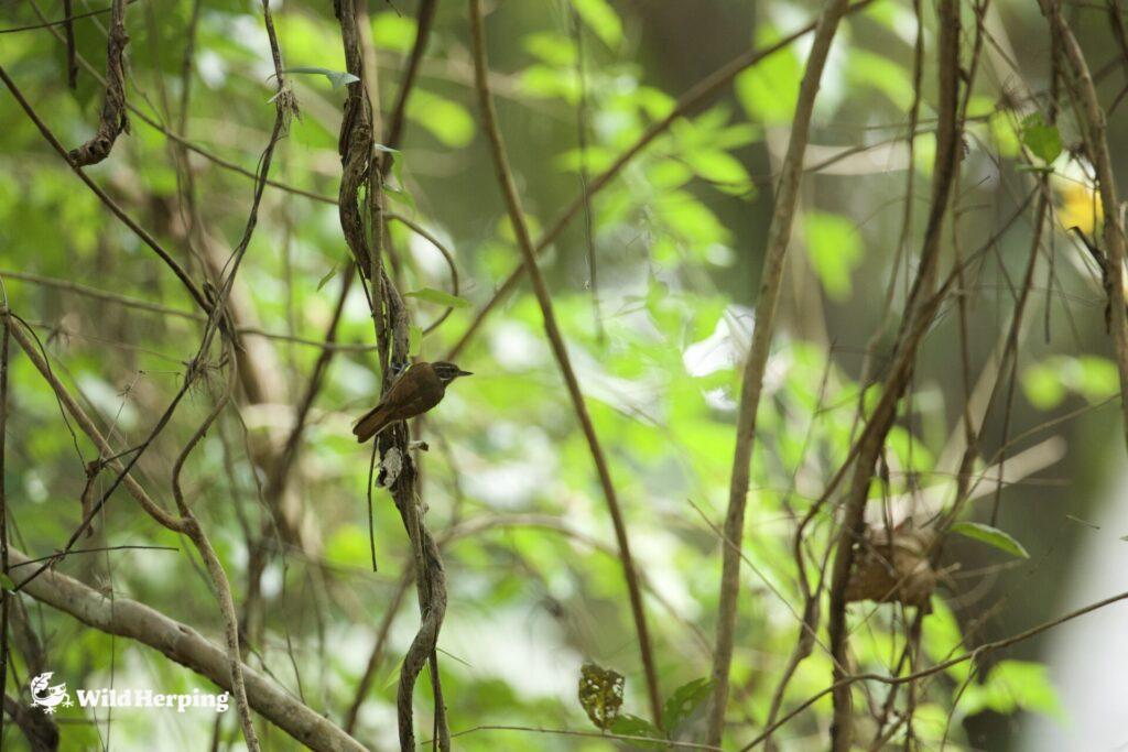 また、探鳥中はグンタイアリにも幾度か遭遇しました。グンタイアリは、多い時で100万匹以上のありが一斉に森の中を歩き回り、落ち葉や木の影に隠れている虫などの餌を根こそぎ攫っていきます。そこで、驚いた虫たちを狙ってアリドリ、ジアリドリなど昆虫食の鳥たちが集まってきます。