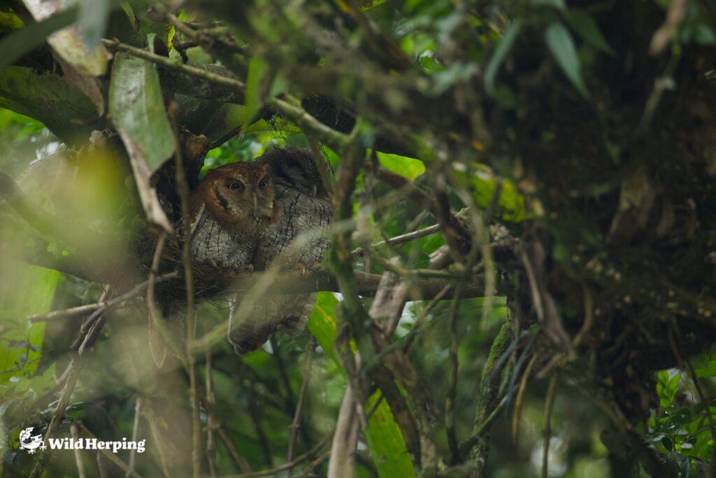 The Tropical Screech Owl (Megascops choliba) was observed resting during the daytime, perched side by side as a pair. While remaining close to one another, they were frequently seen preening, and their calm, intimate behavior left a particularly strong impression.