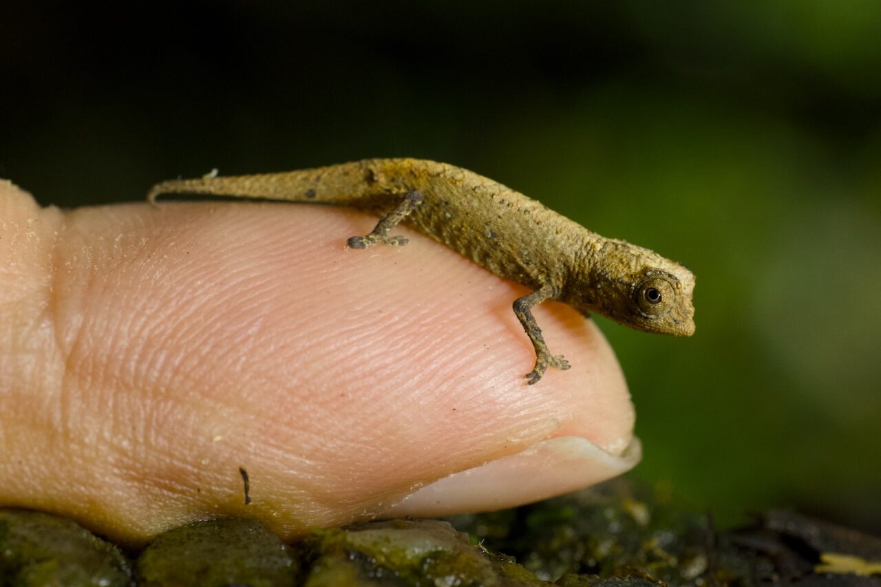 世界最大のヘラオヤモリマダガスカルヒメショウビン パンサーカメレオン ブロケシアの仲間(Brookesia peyrrierasi)