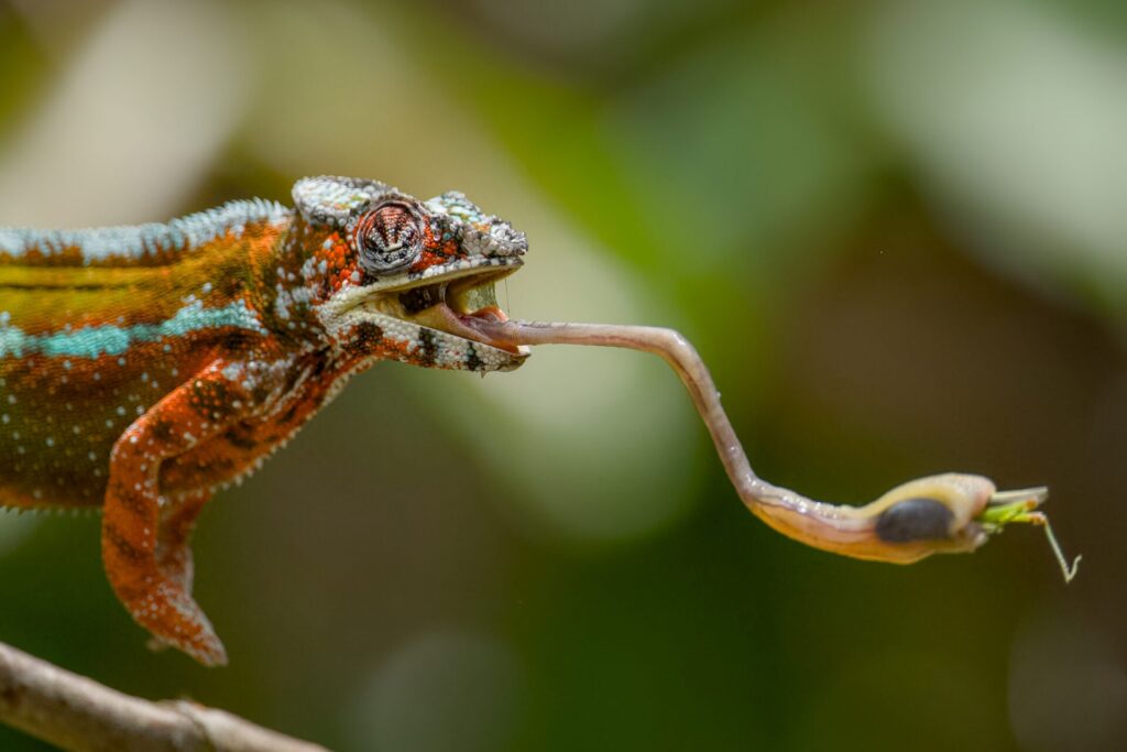 カメレオン、ヘラオヤモリなどなど。マダガスカルならではの爬虫類たちも見逃せません。ヘラオヤモリは、合計7種類以上の生息地へ訪れ、カメレオンは、私の大好きなブルーノーズカメレオンに加えとても小さなブロケシア(Brookesia tubeclata)などの観察。また、さまざまな色合いのパンサーカメレオンを観察し、オレンジ、緑、ピンクに加え、ピカソと呼ばれるまるでカラフルな画家の作品であるほど美しい色合いの多い地域も訪れます。また、熟練したカメレオン捌きで実際に餌を食べているシーンの撮影などにも挑戦します。