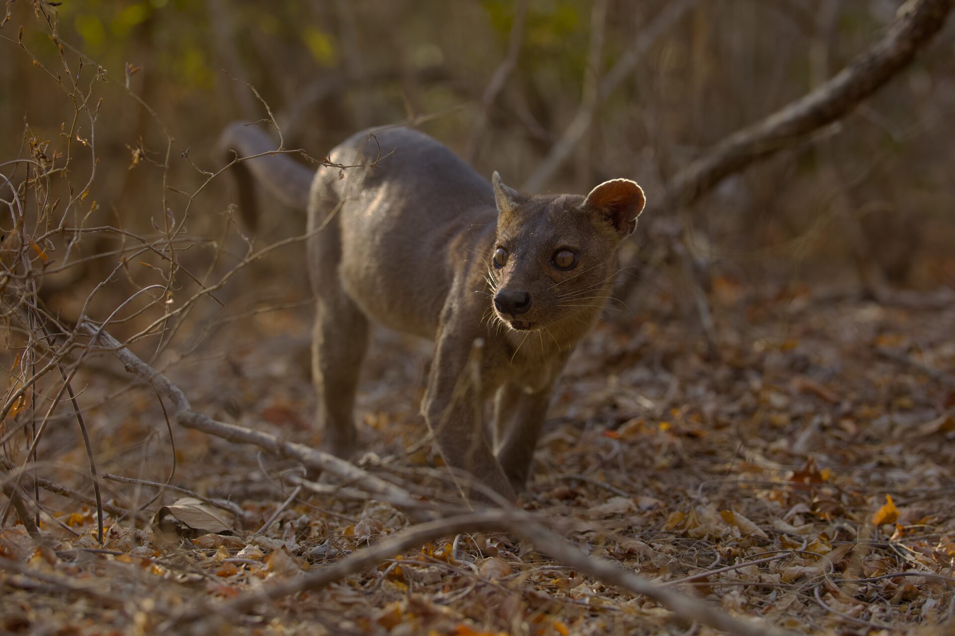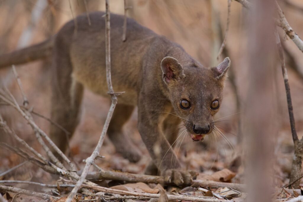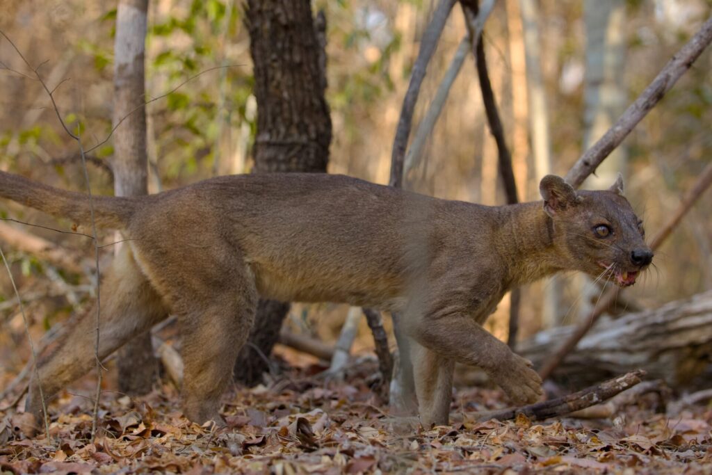 マダガスカル最大の肉食獣フォッサ。長年の研究により歩くルートを予想し、うまくいけば正面からの撮影も可能です。